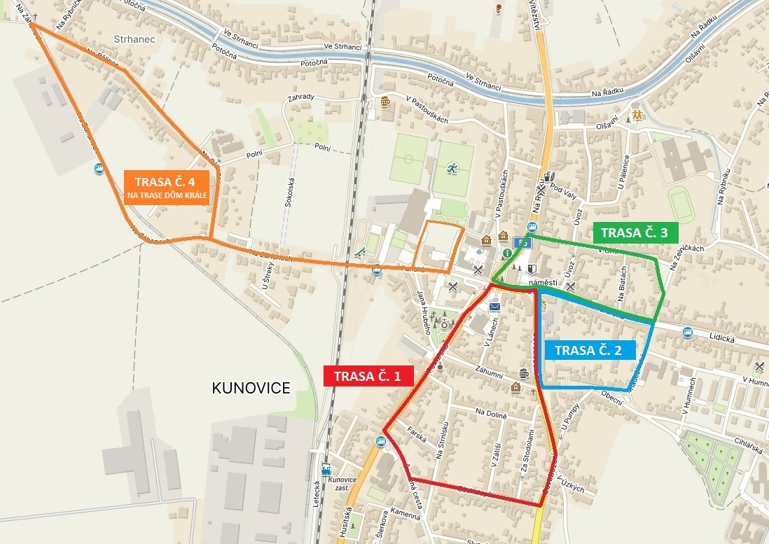 Trasy projížděk kočárů a povozů ulicemi Kunovic